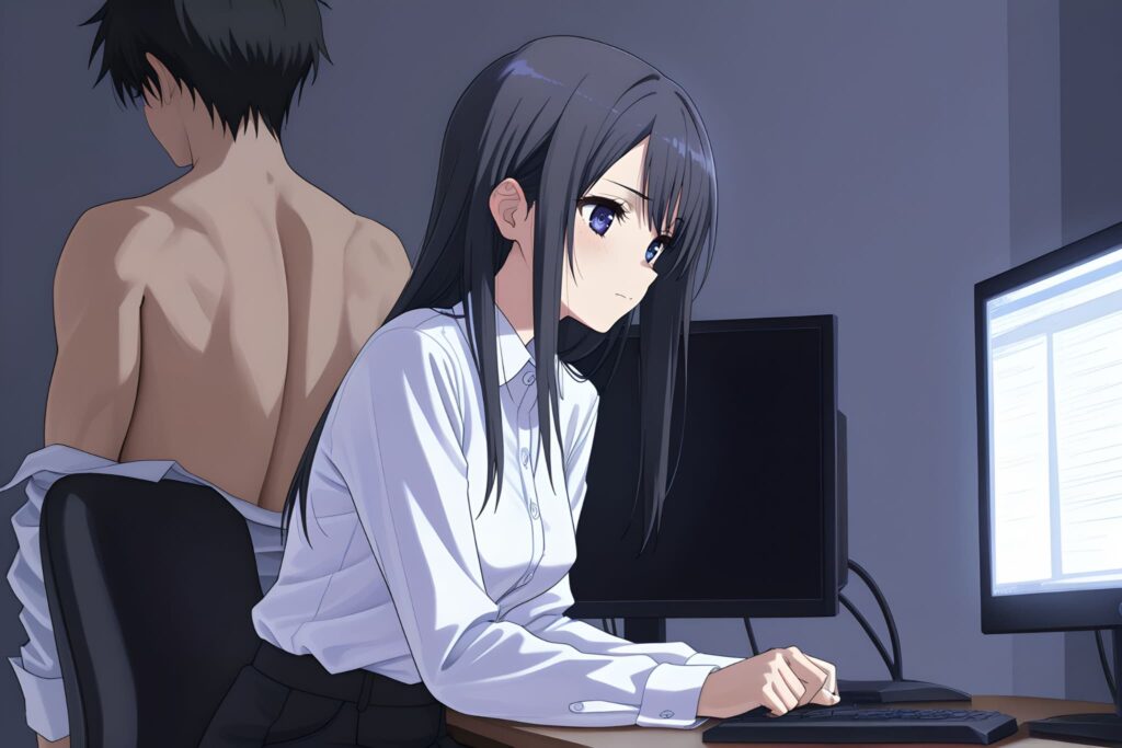 女性キャラの肩だしを封じたら、男性キャラを脱がすことで露出のノルマを達成しようとする。もはやAIが「とにかく誰かの肌を見せなければならない」という使命感で動いているようにすら見えます。
