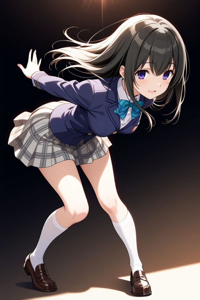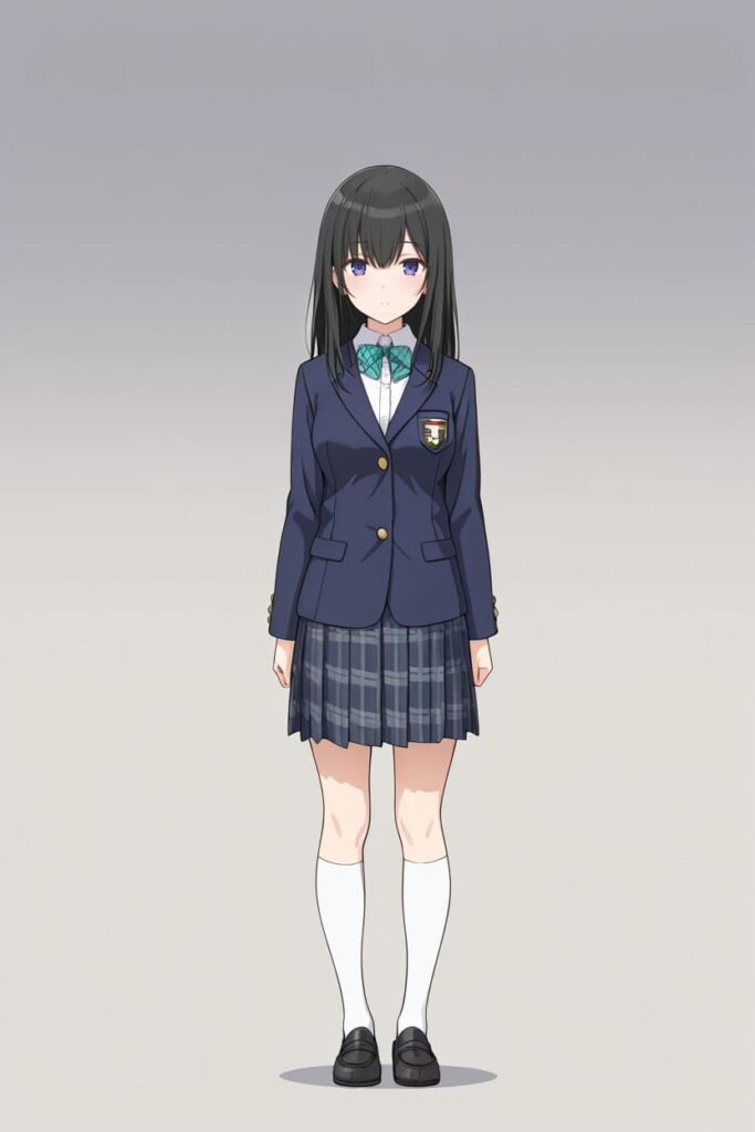 細部のディテールにはブレが残ります。 リボンタイの形状、ブレザーのボタンの数、襟の開き具合──こうした細部は、生成のたびに微妙に異なります。「同じ制服を着ている」と認識できる程度には安定しましたが、「まったく同じ制服」と呼べるかと聞かれると、答えはノーです。